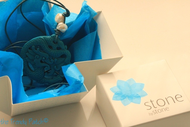 And voilá, the pendent made of Chinese lac, in a greenish blue tone, allusive to the chinese Dragon new year, very lovely to wear with a white t-shirt and jeans for the Spring/ Summer season.